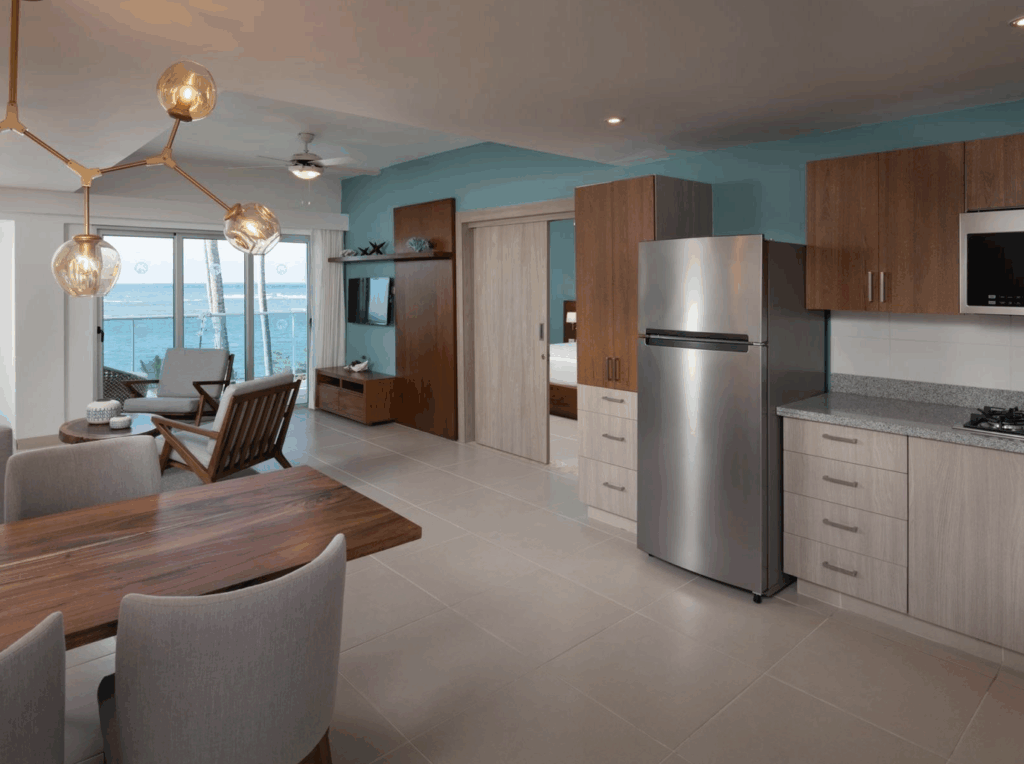 All accommodations at Imperial Suites Cabarete are designed with luxury and comfort in mind and feature stylish modern décor as well as designer furnishings. This unique luxury resort features beautifully-appointed vacation suites, ranging in size from one, two, and three bedroom suites to deluxe penthouse accommodations. All suites include a fully-equipped kitchen, ample living spaces, and breathtaking panoramic views of the beach and gardens.
