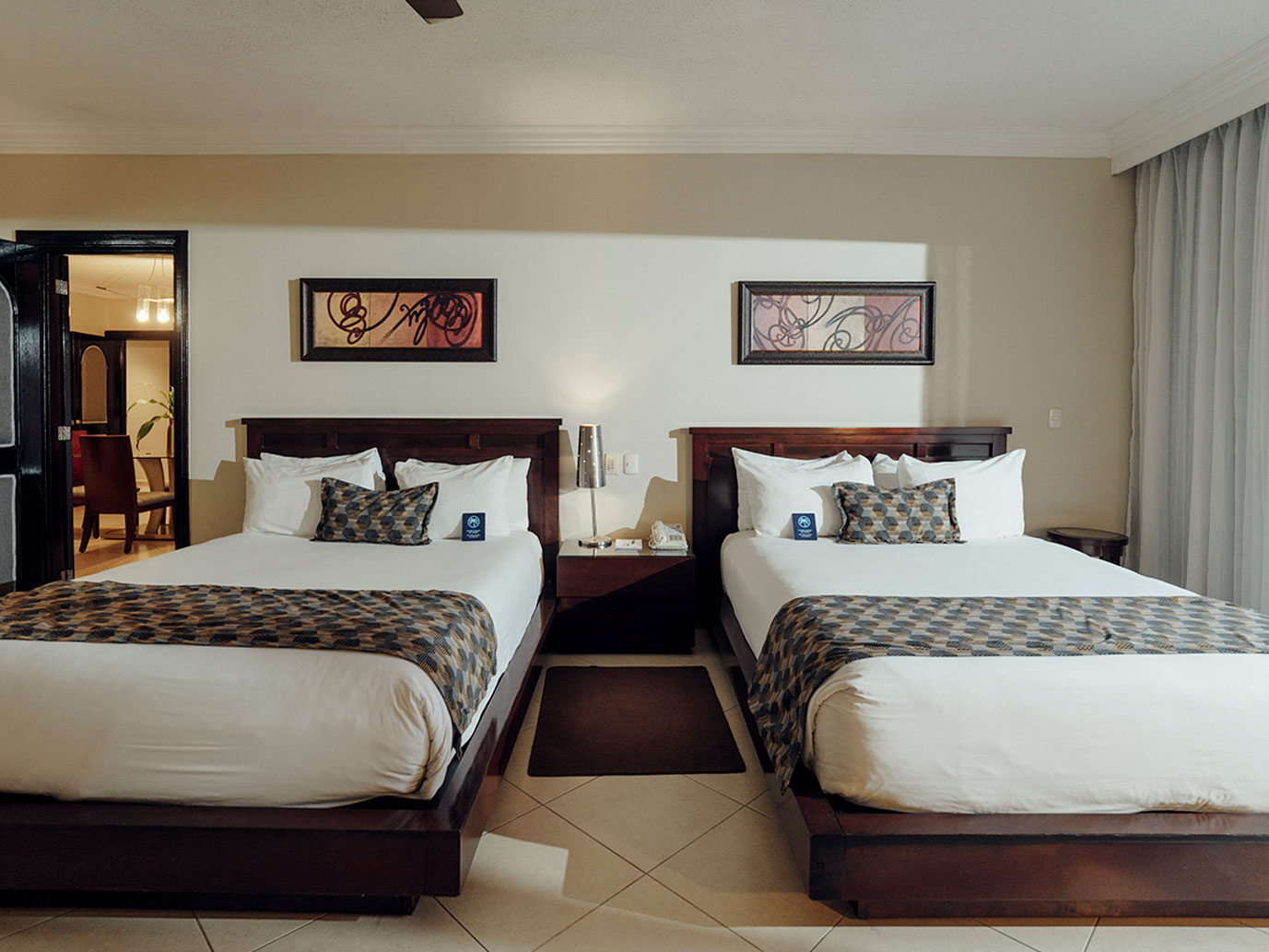 All suites have one king bed in the master bedroom, two queen beds in the second bedroom and a queen murphy bed in the living area, along with three private bathrooms, air conditioning, ceiling fans, cable television, and phones.
